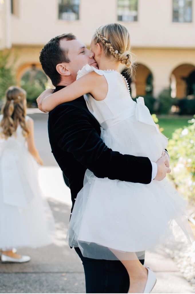 The day began at the historic Mont La Salle Chapel in Napa, a location that held deep meaning for Cambria and her family thanks to long-standing family ties. The couple chose not to do a first look, wanting to keep the anticipation for the ceremony, but they did decide to take all of their formal family portraits before the ceremony in the stunning chapel grounds. One of the most emotional moments of the day was Cambria’s first look with her four older brothers. It was incredibly touching and set the tone for a day centered on family and love.